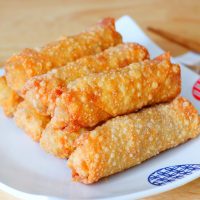 - Repeat with carrot, bell pepper, ham, crab sticks, cucumber, pickled radish, and braised burdock.