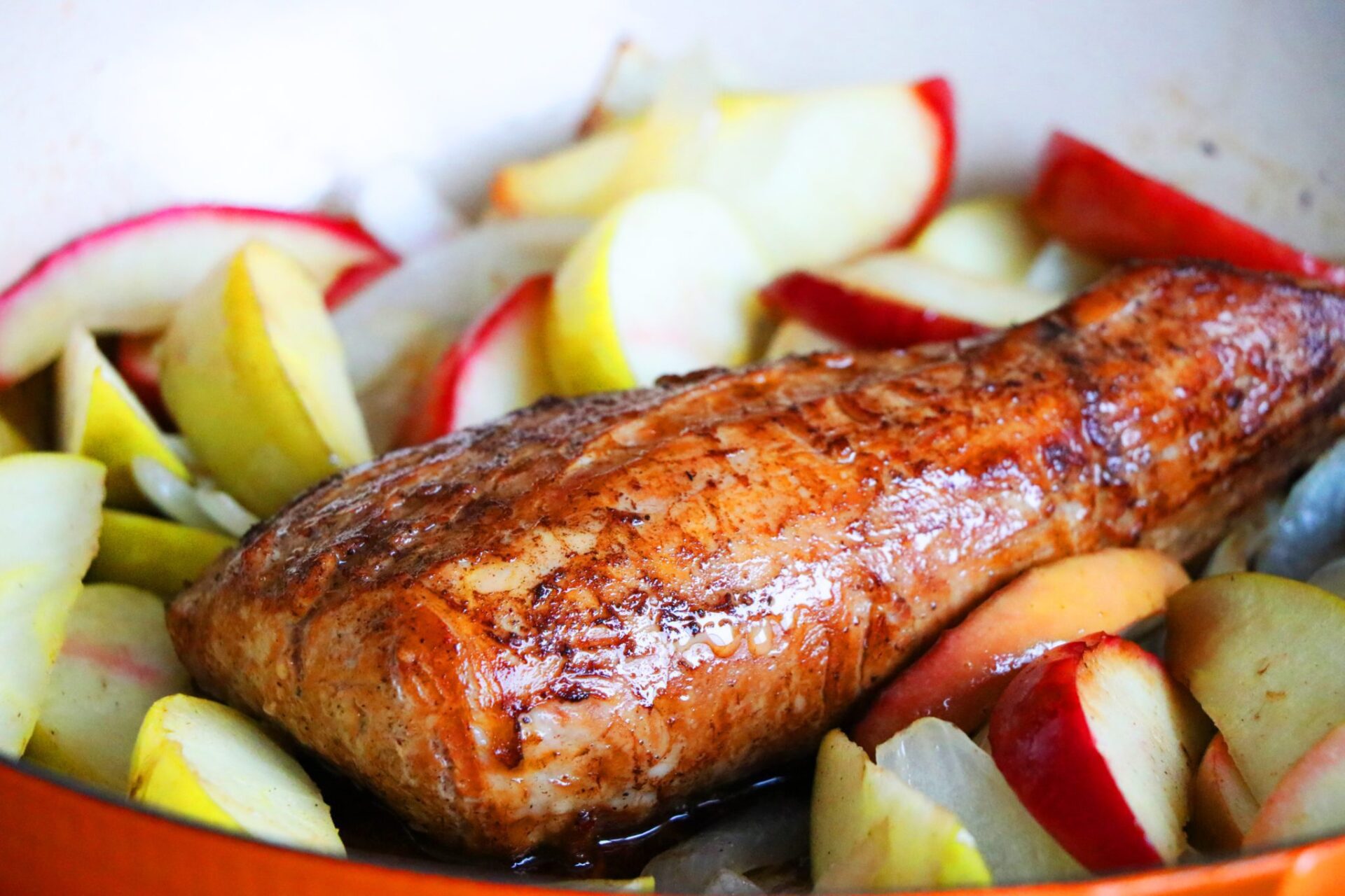 Merry Christmas to all my foodies! How to make super moist and flavorful roasted pork tenderloin? This is a Christmas recipe that you must try. The tenderloin is so juicy and it pairs perfectly with the sour and sweet of the apples. I’m sure that you will impress your guests with it!