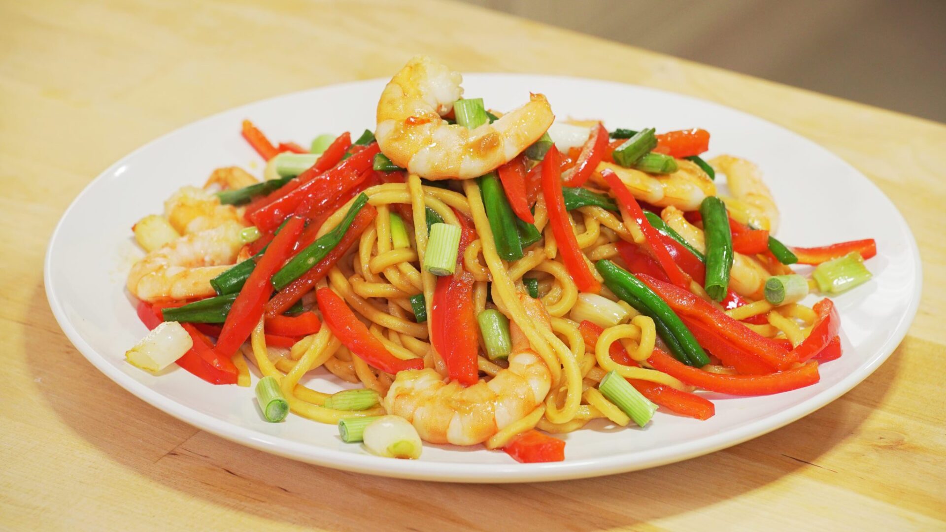 Did you know that the Lo Mein that we know in America is different than the Lo Mein in China? Originally, Lo Mein is just like wonton noodle soup, but the soup is on the side. Partially, lo means to scoop out of water. And mein means noodles. And the Lo Mein in America becomes stir fry noodles with vegetables and meat. But you know what? I actually really enjoy the American version, so we’ll be making Chinese stir fry shrimp lo mein today.